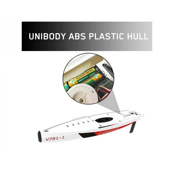 Уникальный цельный корпус сложной конструкции изготовлен из ABS-пластика гарантирует прочность, долговечность и великолепный внешний вид, отличается прочностью и устойчивостью к трещинам. Герметичный водостойкий люк на палубе защищает внутренние электронные компоненты. Небольшой размер модели обеспечивает простоту использования, позволяет запускать модель в относительно небольших водоемах и упрощает транспортировку модели.