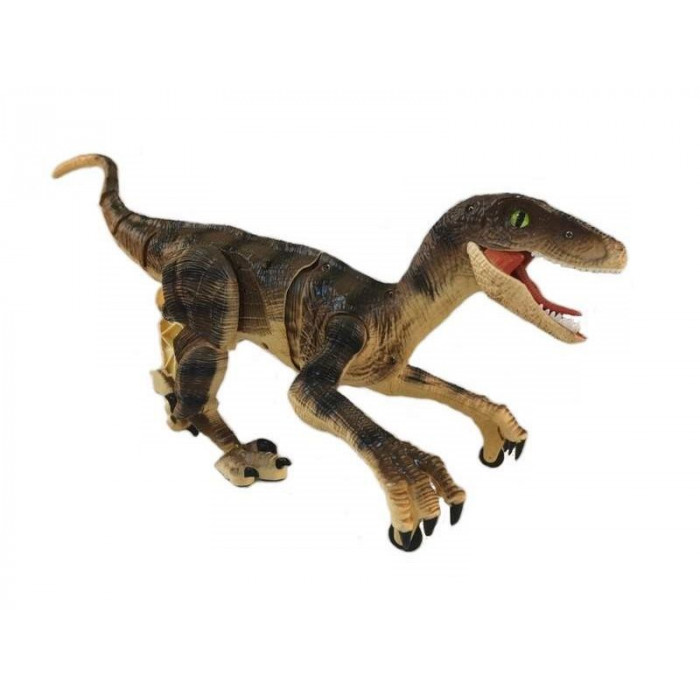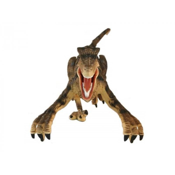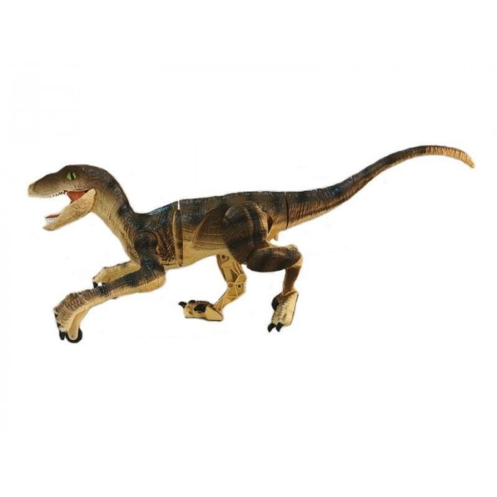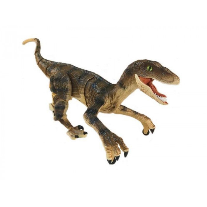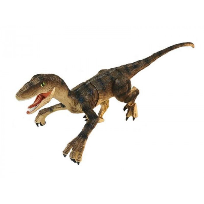 Такого питомца на радиоуправлении можно приютить у себя. Он может двигаться вперед и назад, поворачивать вправо, влево и при движении реалистично изгибается тело и шевелится хвост. Благодаря колесикам, установленным на передних конечностях, велоцирапотор имеет дополнительные точки опоры и поэтому очень устойчив. Подсветка пасти в темноте выглядит зловеще и придает динозавру реалистичности. Кроме того, динозавр издает реалистичные звуки.