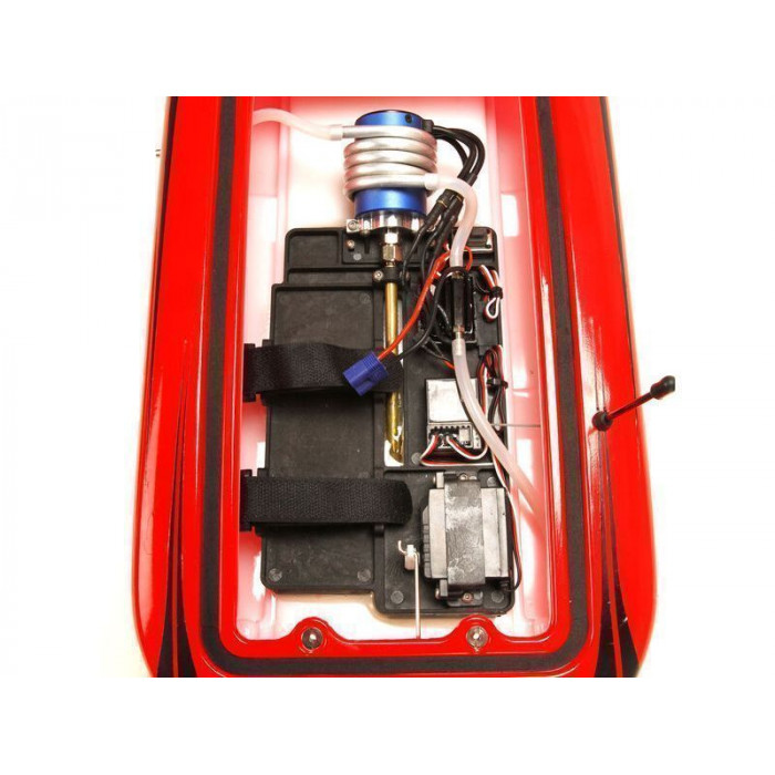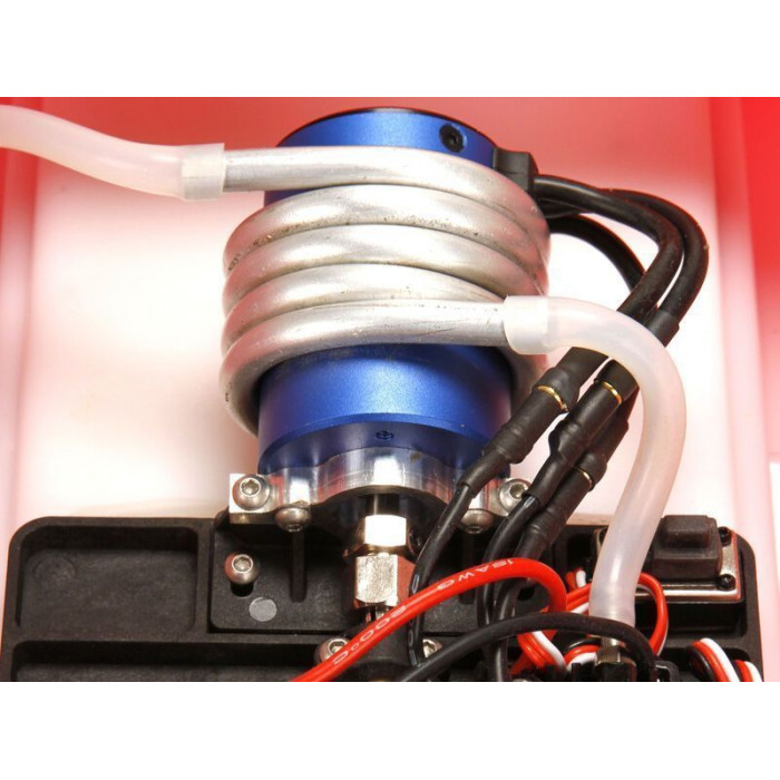 Модель оснащена бесколлекторным двигателем 2000Kv с водяным охлаждением и регулятором скорости 30A, совместимым с батареями LiPo.