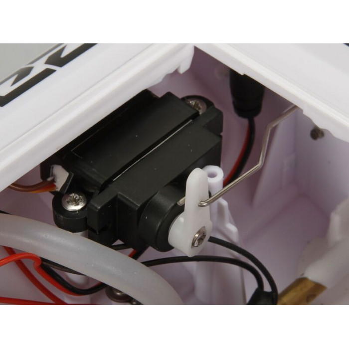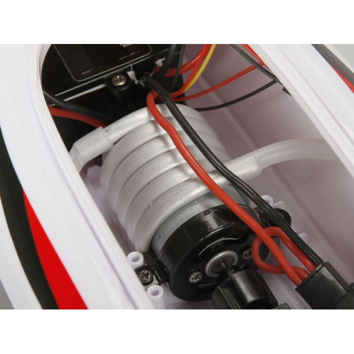 Катер оснащён коллекторным двигателем 390 класса с водяным охлаждением, который позволяет разогнать React 17 до скорости более 30 км/ч, и он идеально подойдет для небольших бассейнов, прудов и озер. В комплекте абсолютно все, что требуется для запуска модели!