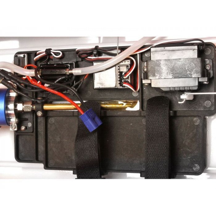 Модель оснащена бесколлекторным двигателем 2000Kv с водяным охлаждением и регулятором скорости 30A, совместимым с батареями LiPo.