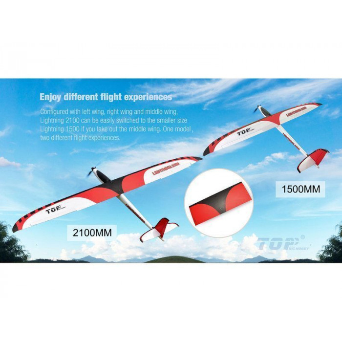 Секрет Lightning 2100 в том, что у него трехчастное крыло. Если использовать все три части, у вас есть хороший «двухметровый» планер, а если использовать только внешние части крыла, у вас есть "hotliner" с размахом крыла 1500 мм.