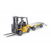 Радиоуправляемая модель погрузчика, выполненная в масштабе 1/10, с прицепом. Погрузчик способен поднимать и перемещать довольно тяжелые предметы. Его подъемный механизм, вилы и крюк выполнены из металла. C его помощью можно также загружать грузы на платформу прицепа, чтобы перевезти большие объемы материалов за один рейс. Это делает погрузчик незаменимой техникой на строительной площадке.