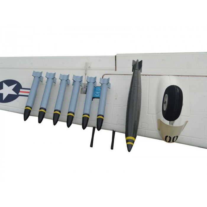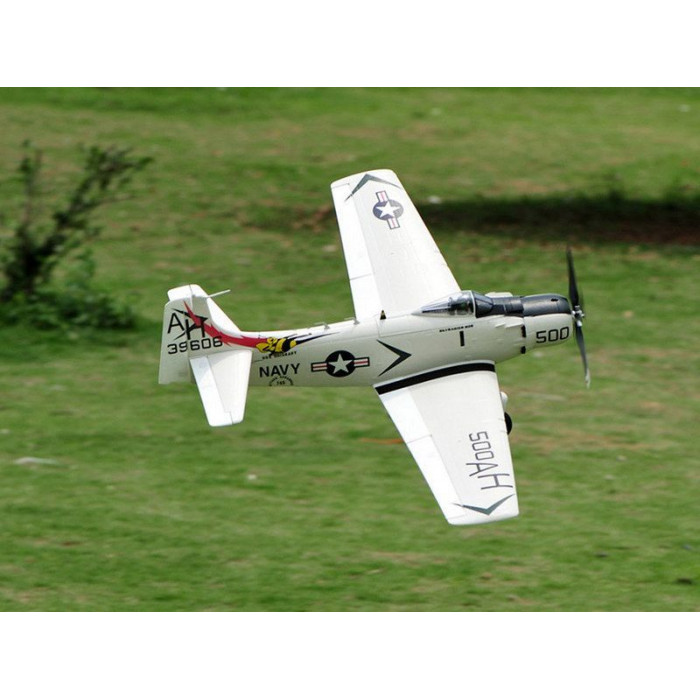 Радиоуправляемый самолет A1 Sky Raider от Top RC – точная копия известного американского штурмовика, который был способен нести большой запас боеприпасов и причинять значительный урон войскам своего врага. Копия настолько приближена к оригиналу, что содержит миниатюрные навесные ракеты, баки, и даже пилота в детализированной кабине. Летные характеристики также не уступают оригиналу. A1 Sky Raider способен выполнять любые фигуры 3D пилотажа, в основном заслуга лежит на пропеллере с четырьмя лопастями, который обеспечивает отличную тягу двигателя.