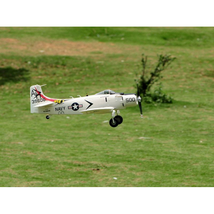 Модель радиоуправляемого самолета A1 SkyRaider выполнена из ударопрочного EPO материала, что делает самолет надежным. Размах крыла составляет 800 мм. Крылья самолета съемные, что дает возможность легко транспортировать.