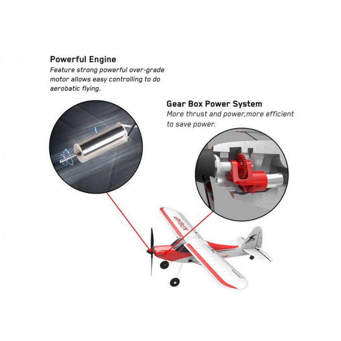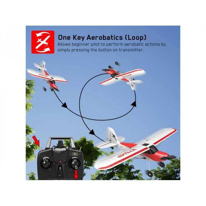 Функция “flip” and “roll” означает, что самолет-тренер может автоматически выполнять фигуры высшего пилотажа в двух направлениях. Если вы установите его в режиме для начинающих, просто нужно нажать кнопку высшего пилотажа, а затем повернуть правый джойстик в максимальное положение или вниз до минимального положения. Получить удовольствие от пилотажного полета сможет любой желающий, даже если он - новый пилот.