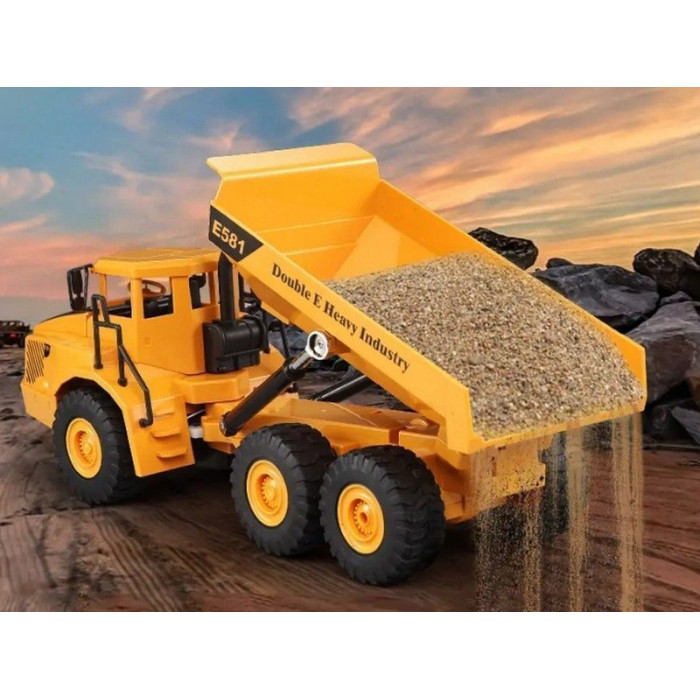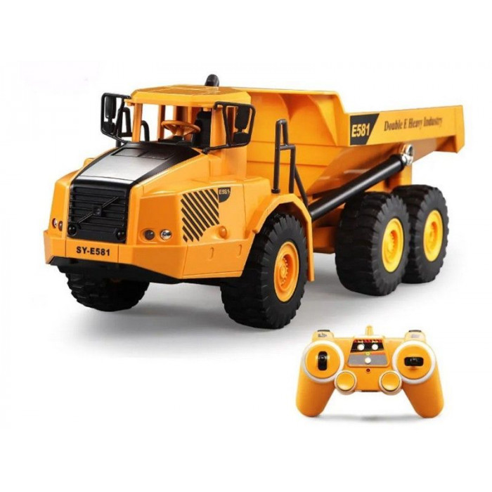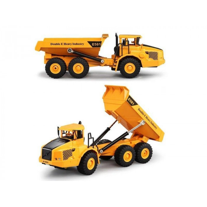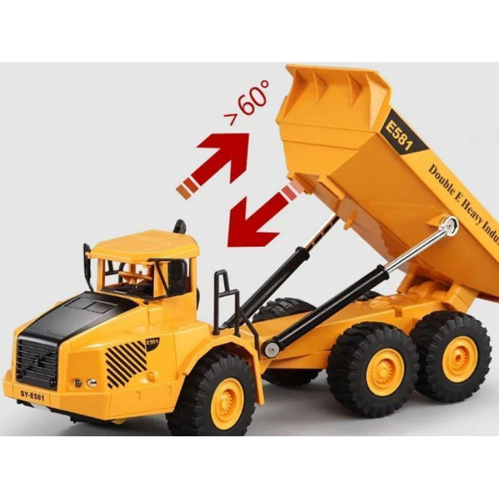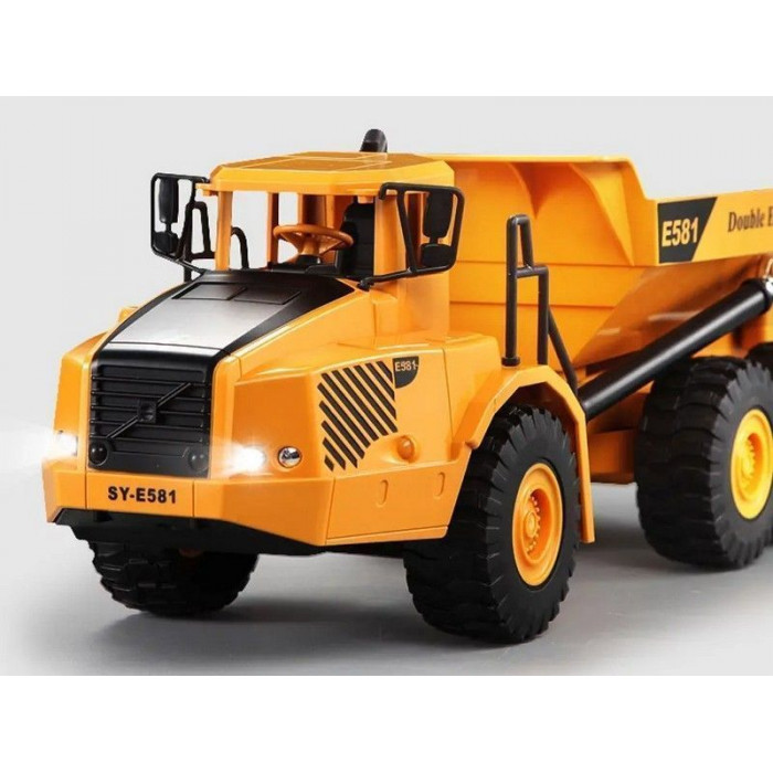 Миниатюрная радиоуправляемая копия карьерного самосвала - копия Volvo в размере 1/26. Яркий жёлтый вместительный кузов и большие колёса сделает игру реалистичной. Благодаря поворотному механизму машина легко входит в повороты. Кузов выполняет свою реальную функцию - он способен подниматься и опускаться на 60 градусов. Яркие фары позволяют работать не только в светлое время суток.