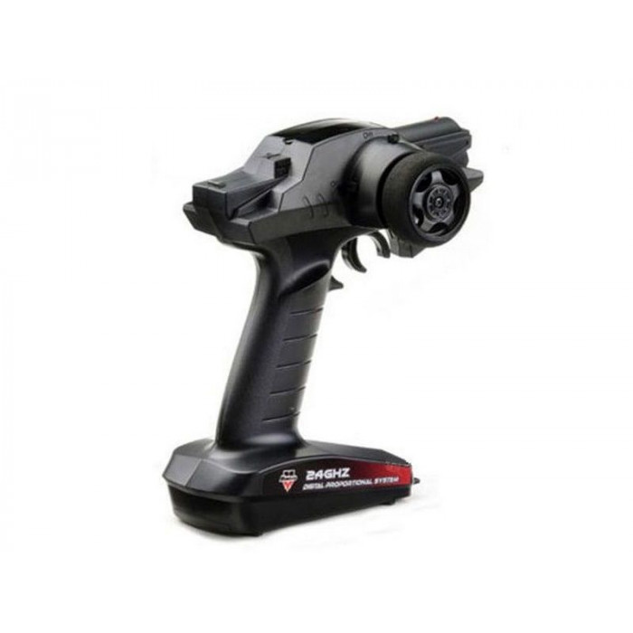 Радиоаппаратура модели представляет из себя установленный 4-х канальный приёмник и 2-х канальный передатчик, частотой 2,4ГГц. Передатчик отличается малыми габаритами и простотой. В то время как большинству систем требуется 8 элементов питания, данный обходится 4-мя. Встроенная в корпус антенна не сломается при переноске, а органы настройки удобно расположены вверху, на видном месте. Помимо привычных настроек, имеется регулировка хода рычага и переключатель мощности частоты. Зарядка аккумуляторов передатчика производится с помощью подключаемого адаптера напряжением 6В (опционно).