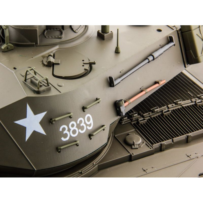 Радиоуправляемый танк US M41A3 Bulldog является точной уменьшенной копией одноименного американского танка, который принимал участие во Второй Мировой войне. Модель исполнена до мельчайших подробностей. Хотя выпуск данного танка был прекращен в 60-х, танк состоял на вооружении ряда стран вплоть до 2000-х годов. Точность проработки корпуса данной модели поражает воображение. Детализированный корпус является точной копией корпуса боевого прототипа.