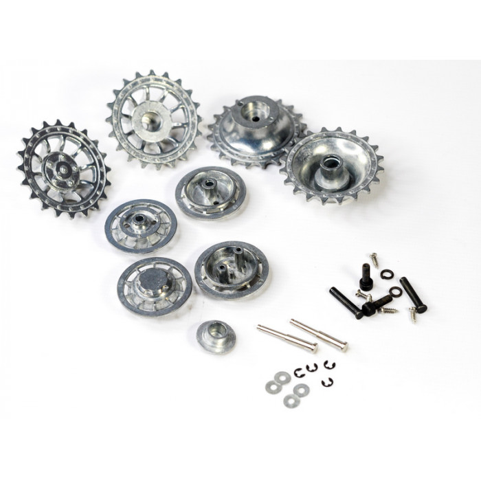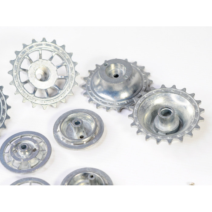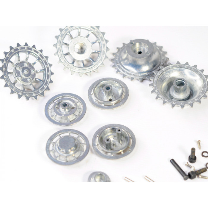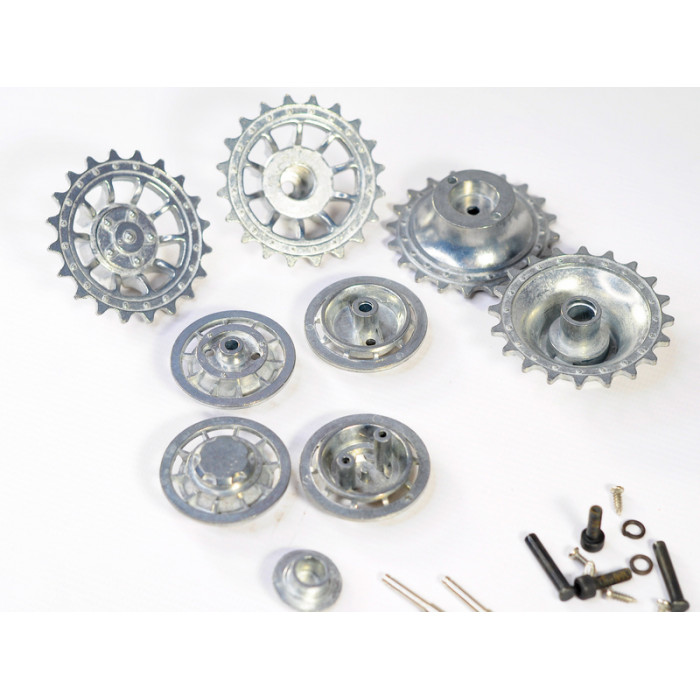 Описание Ведущая звездочка 2 шт и ленивец 2 штуки для танка Tiger (металл) поздняя версия